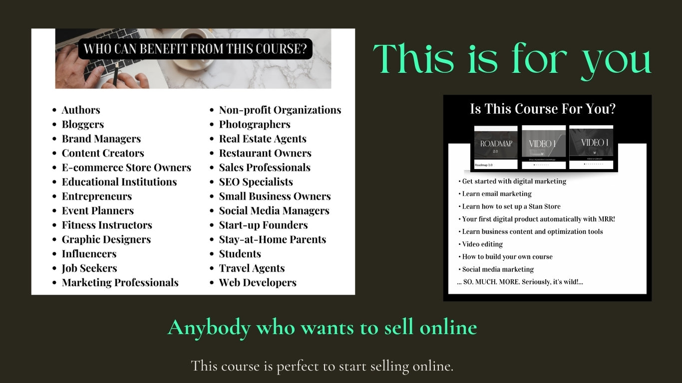 Bottom line: online courses can be profitable in ANY industry, the key is making sure your topic is marketed effectively (aka what we help you with inside the course)